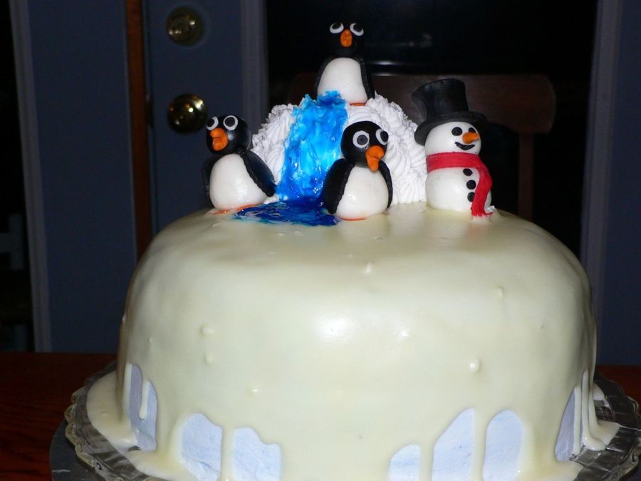 MavericksMommy on 6 Jan 2007 , 10:11pm Very cute! Your penguins and snowman are adorable! What is the frosting dripping down the sides? It has a neat effect :D :D