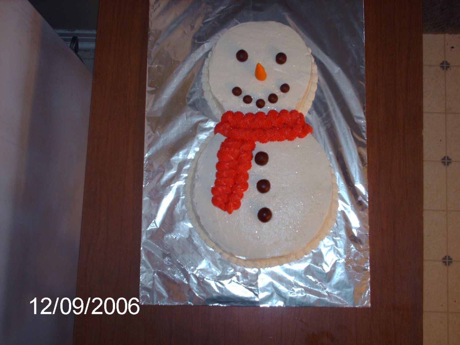 This is the cake I made for our Sunday School Christmas party. I got the idea from here and I also got the recipe from here. It is a white chocolate cake with white chocolate icing. I wasn't sure how to do a hat for the snowman, so that's why he doesn't have one. Cake pan sizes are 6" for the head and 8" for the body.