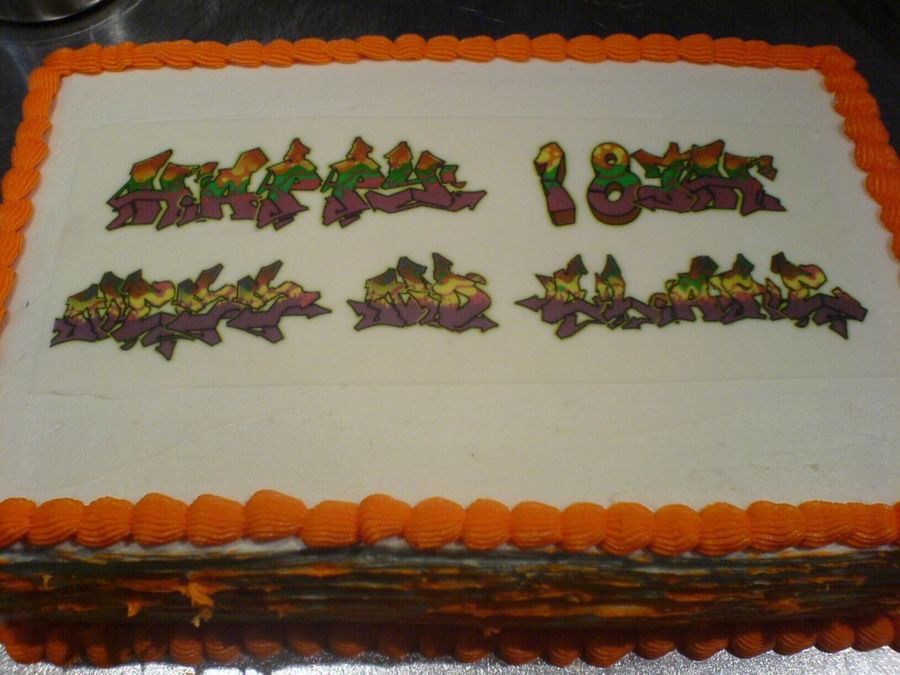 This was for my friends girlfriends 18th. I had so much fun making this cake. I designed the graffiti myself, and had it printed on edible paper. It's the first sheet cake I've done. and I'm thrilled with how it turned out!