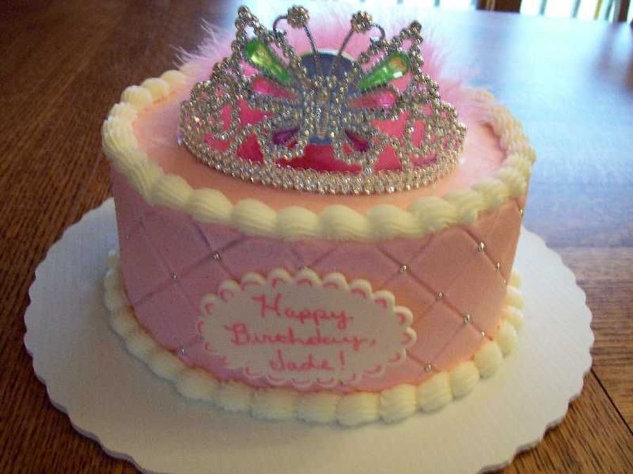 Here is the cake I did for my great neice who turns 6 this week. Cocolate fudge with Cream Cheese Mint Buttercream. The crown youcan get at Wal-mart for $.99 cents!! I have a piece of a feather boa inside the crown. I lay the crown and boa on top of a wax paper circle.