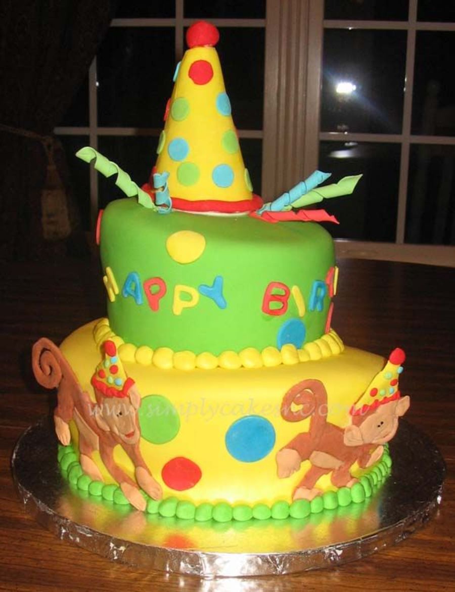 This cake is very important to me and will always live in my memory. It was the first cake I made after going full time. The little monkey and hat are from the invites a first birthday. I was delighted to finally have time to make the details of the monkey (they are made of gum paste) and the hat, etc.
