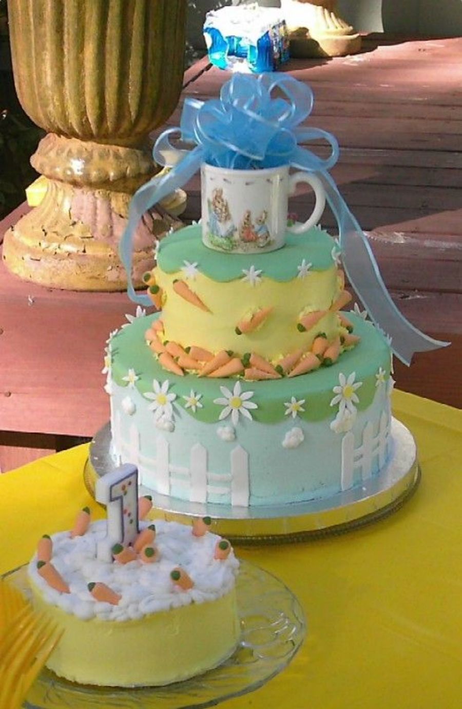 This was iced in BC with fondant decorations. The customer supplied the cup and bow for the top. The carrots were my first time really using Satin Ice fondant. A note to those of you who've never used this...it dries pretty quick (or rather it gets a "crust" on it very quickly). Thanks to those of you who helped me with ideas a few months back.