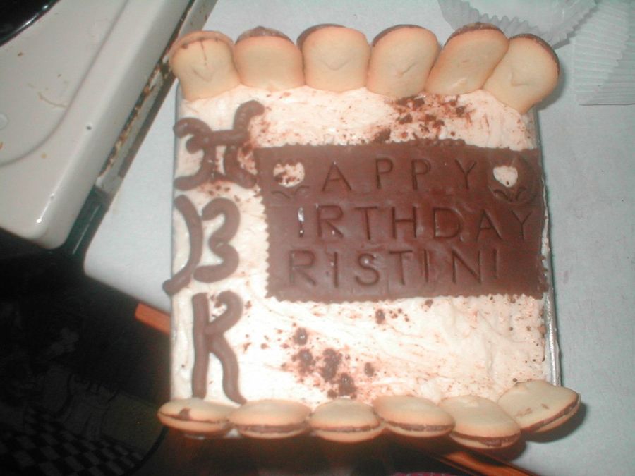 This was my first attempt at Tramisu, I had no idea that this cake did not stand up well, I had to put it in one of my pans and decorate the best I could.