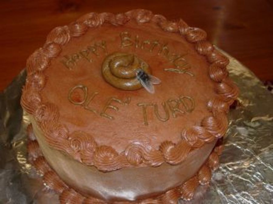 For my sister's birthday. This cake was my first attempt at chocolate buttercream. It flopped and I figured I'd decorate it like it tasted. Better to not let a cake go to waste!