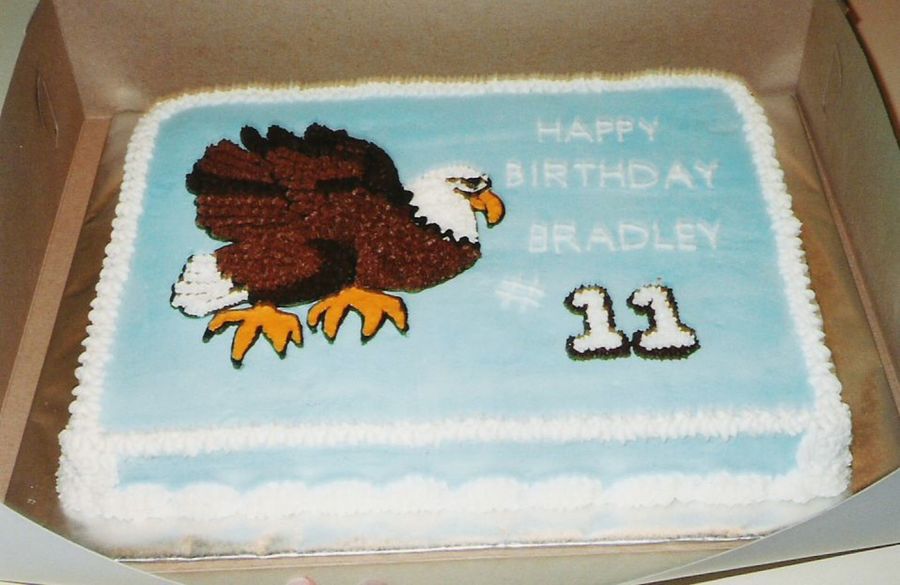 I was so excited, I was asked to make a cake with a Bald Eagle on it. I looked in some of my Old Wilton Books, I'm talking from the 70's. I found this cake, I was so pumped thought it looked great. The poor boy was very dissappointed, He wanted the both wings to be spread! I was crushed. Thankfully I have learned alot since then. VERIFY ALL DETAILS!!!