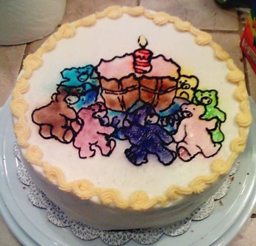 This was the WBH choc. chip pound cake with whipped cream filling and almond BC. I was just doing a practice cake with my airbrush and new projector that gmcakes recommended. Thanks gmcakes. I just used my daughter's 5th birthday invitation as the image.