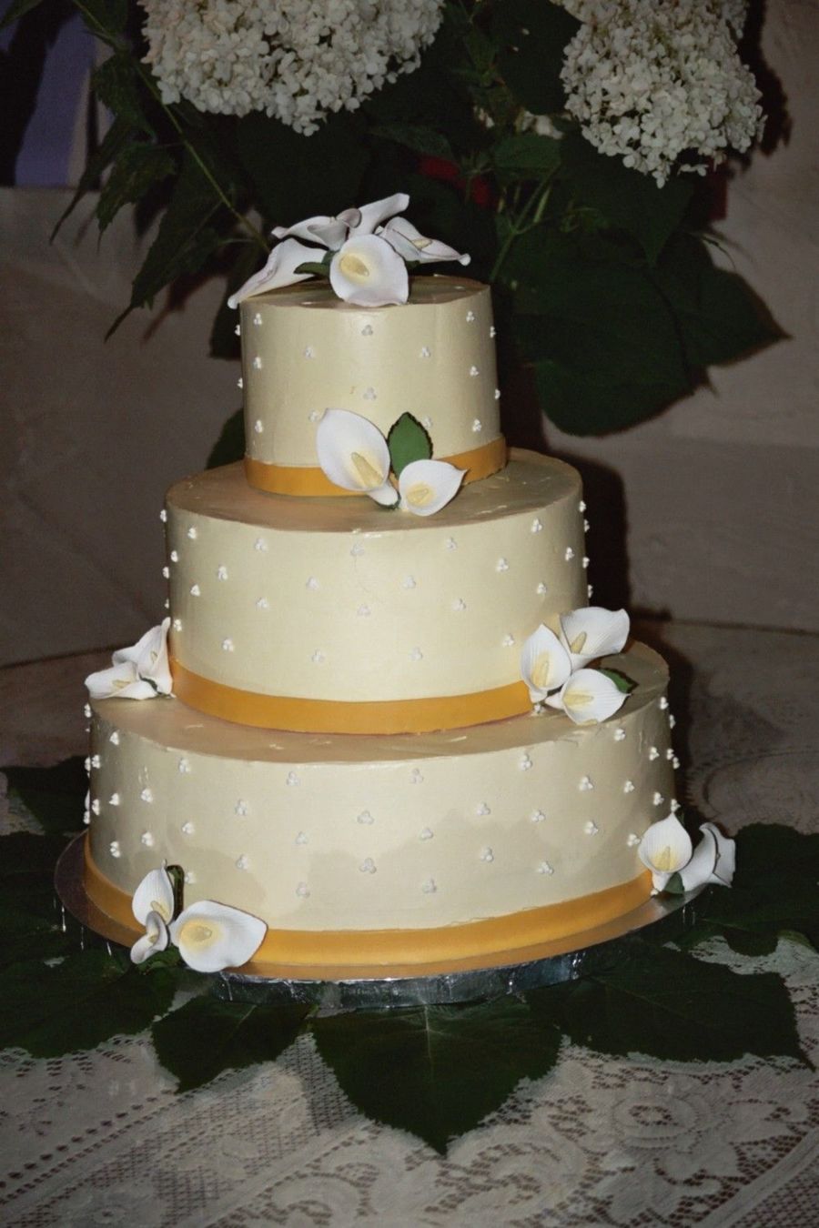Yellow SMBC with swiss dots. Darker yellow fondant ribbon.