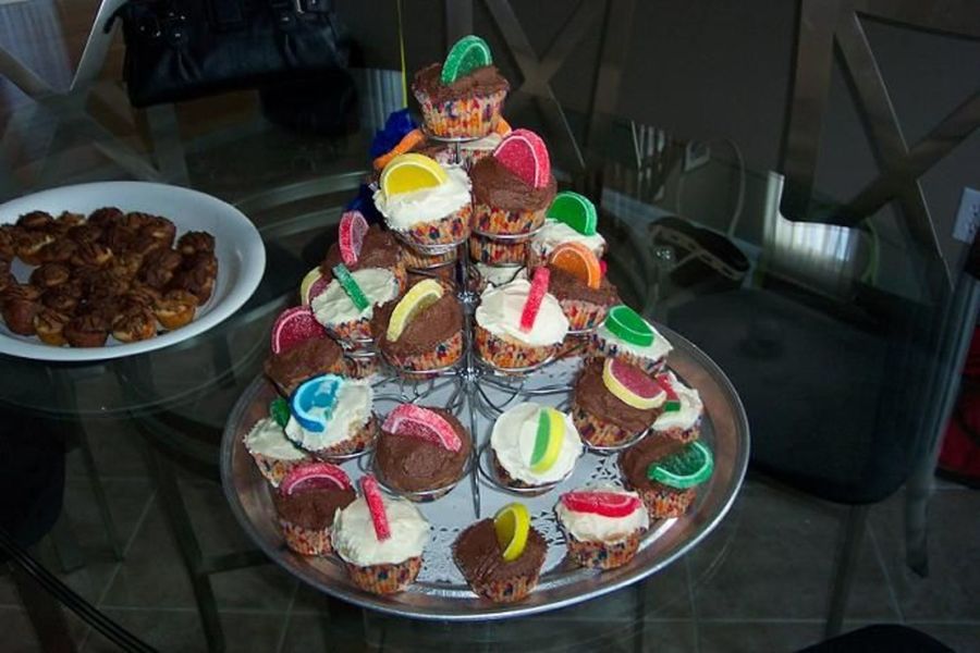 This was a big hit at a recent pool party. Wilton 23 place holder. White and chocolate bc, butter/pecan cupcakes. Jelly candies as decoration. Thanks for looking!