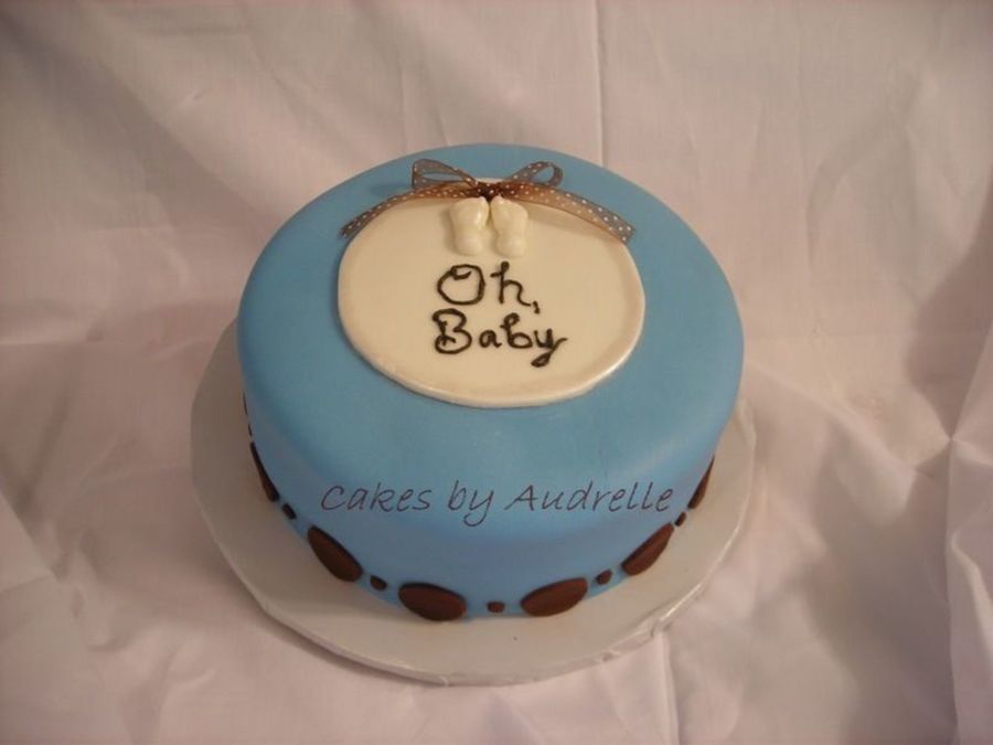 Baby shower cake done to match invitations; covered in fondant with fondant accents and "real" ribbon. Toba Garrett icing.