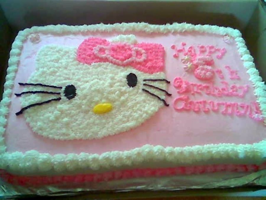 Just a basic hello kitty with buttercream and fondant eyes and mouth. I found a very similar picture online, but it was probably inspired by CC. Thanks every9ne!
