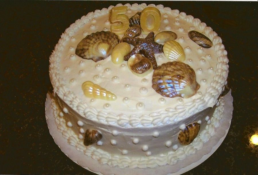 buttercream, shells are chocolate painted with pearl dust. Last minute surprise 50th anniversary party dinner.