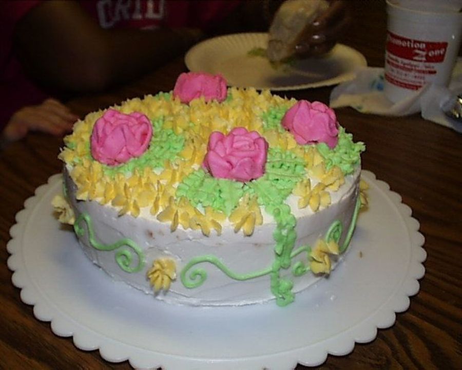 This cake was done prior to taking my Wilton's courses. Ya know, before you learn the art of "less is more." Anyway, I thought I would try some flowers and leaves and this is what I got.