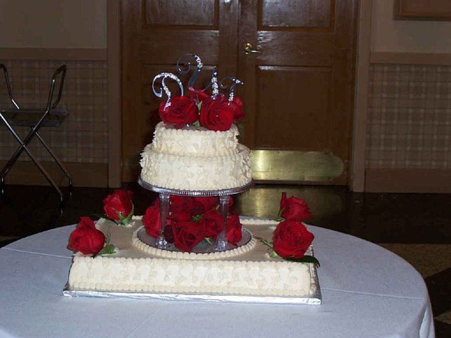 1/2 sheet with 8 & 6" stacked - the flowers are real.