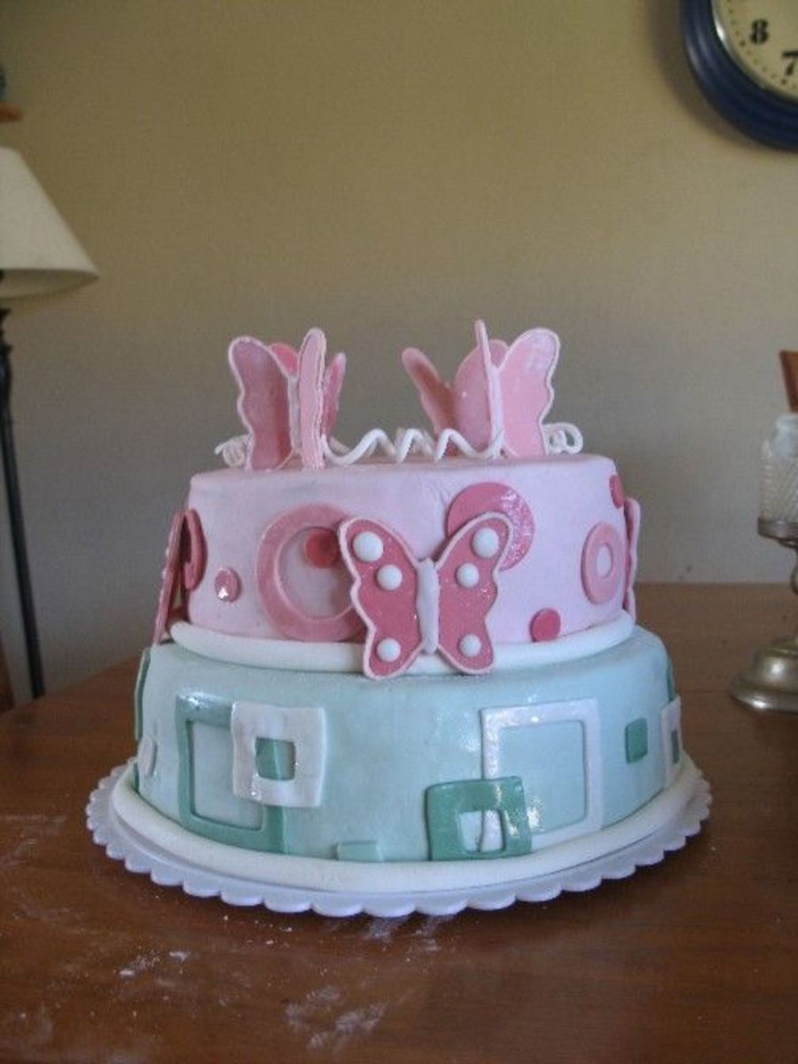 MMF decorated with royal icing. I made the butterflies the day before, but everything else I threw together in a few hours... including the cake layers and filling. I didnt get to spend the time I wanted to make it look a bit nicer, and it came out a bit sloppy.