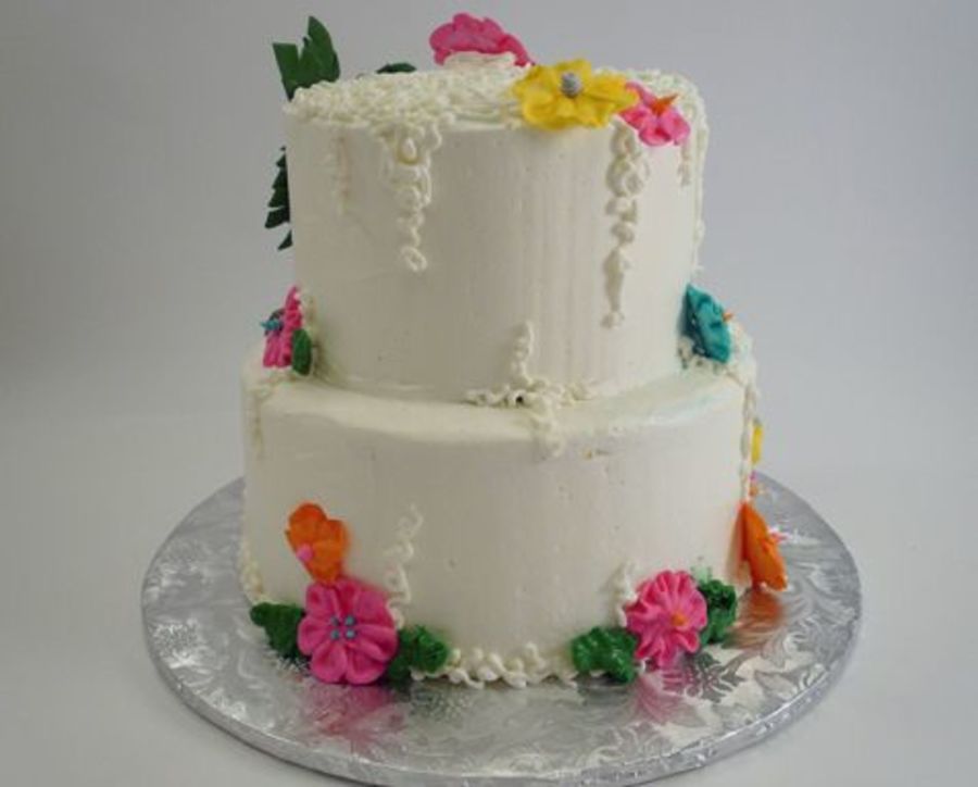 This is actually the back of my waterfall cake, but I would like to do one like this all the way around sometime, I liked how it came out. Buttercream icing, Royal icing flowers.