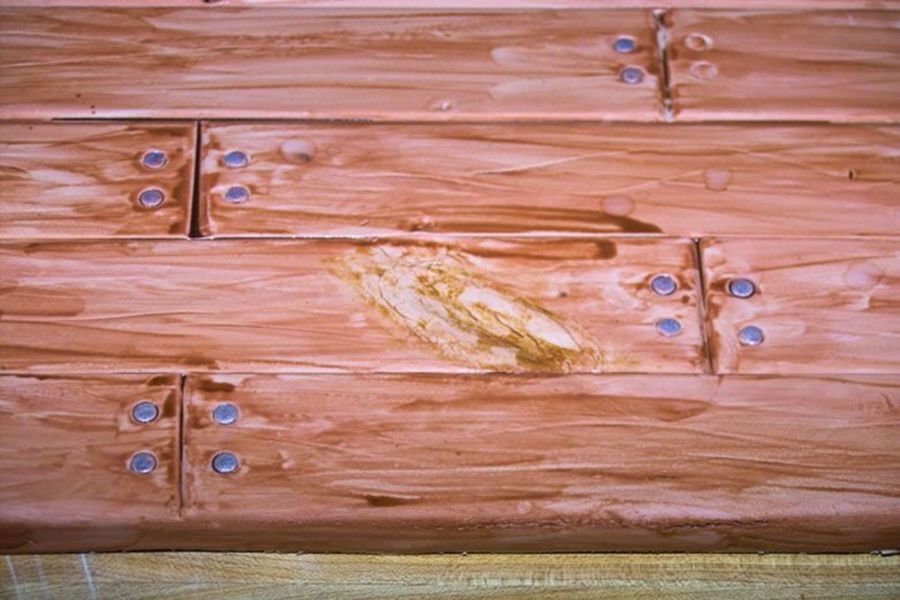 brown and red for mahogany, then paint your nails silver. Oh - before you paint, mark long wavy lines in each board with the back of a knife. That's it!