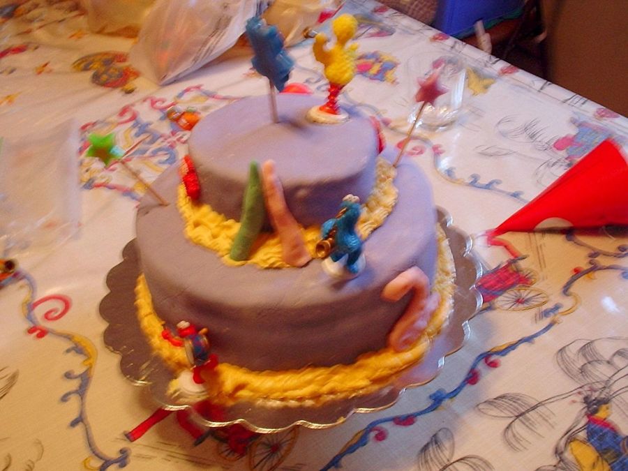 This cake was made for my cousin's second birthday. The crayons and the number 2 were made with candy clay elmo was made out of fondant. This cake is a variation on another elmo cake on this website. I don't remember her name right now, but I'll look it up. Thanks!