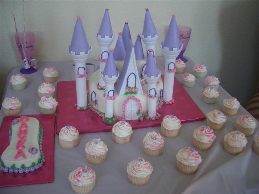 NEVER again will I make this cake!For a first bday.The towers, which were not attached, fell during transport (they were in a box).I couldn't for the life of me get the towers to stand up on the cake, they kept falling down.The dowels would not stay attached b/c it was too hot for the candy melts to stay firm.I had to do away with the top towers and just put the cones on. Cake is chocolate, bc icing, mmf. Cupcakes are WASC, rasp. filling, cream cheese icing. Smash cake is carrot applesauce with bc icing