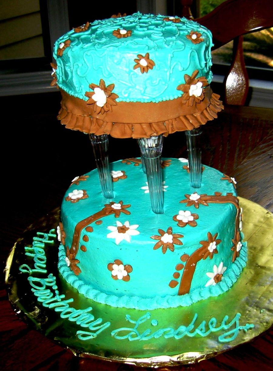 This is a cake i did for my daughter's 17th birthday. It's also my first attempt at using columns. I got the kind you don't need two plates for but realized after I got the cake together that I should NOT move the cake once assembled! He He It wasn't too stable and I almost lost the top! Anyway, still learning!
