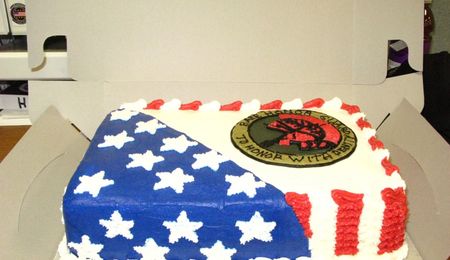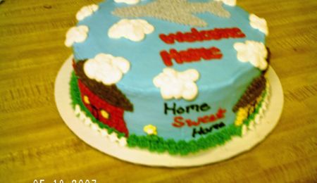 This cake was done as part of a fund raiser for our local Relay for Life. It raised $120! The color is a little distorted in this pic though- the basketweave was purple not blue. White cake with raspberry filling, mostly buttercream icing, and some flowers are royal icing.