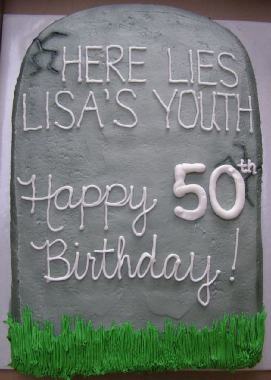 This is just a classic "over the hill" design: white cake and bc. Thanks for the ideas CC members!