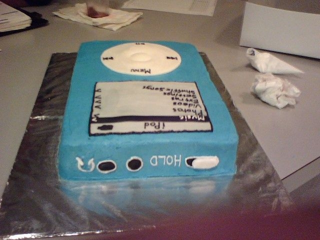 I work at a residential treatment center for children w/behavior problems. This was made for one of the child's birthdays. iPods are his favorite!! Yellow cake, buttercream frosting and fondant accents.