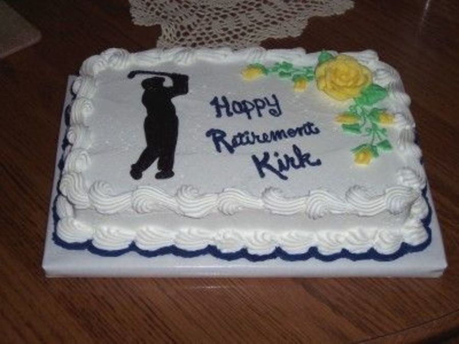 7x11 sheetcake; golfer silhouette transferred using rice paper.