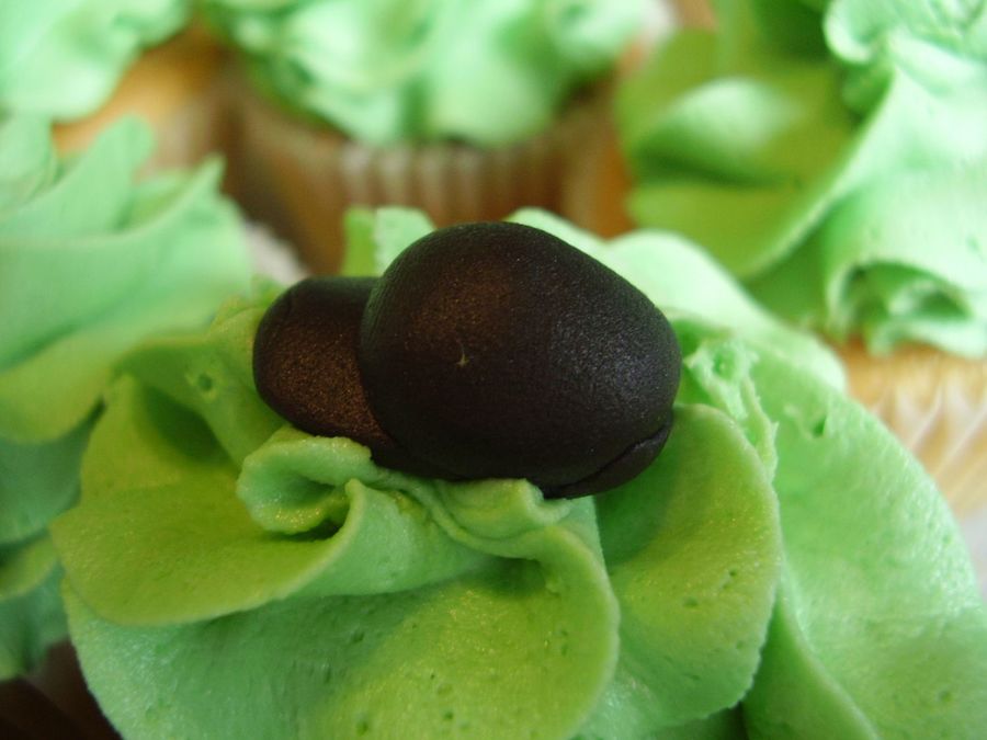 The topper for the blackjack birthday cupcakes. This silly little hat took me FOREVER to make. Eventually, I just ended up using a ball of fondant for the hat part, and a circle for the brim, and setting the hat part on top of the circle and shmushing (totally technical terminology) it together.