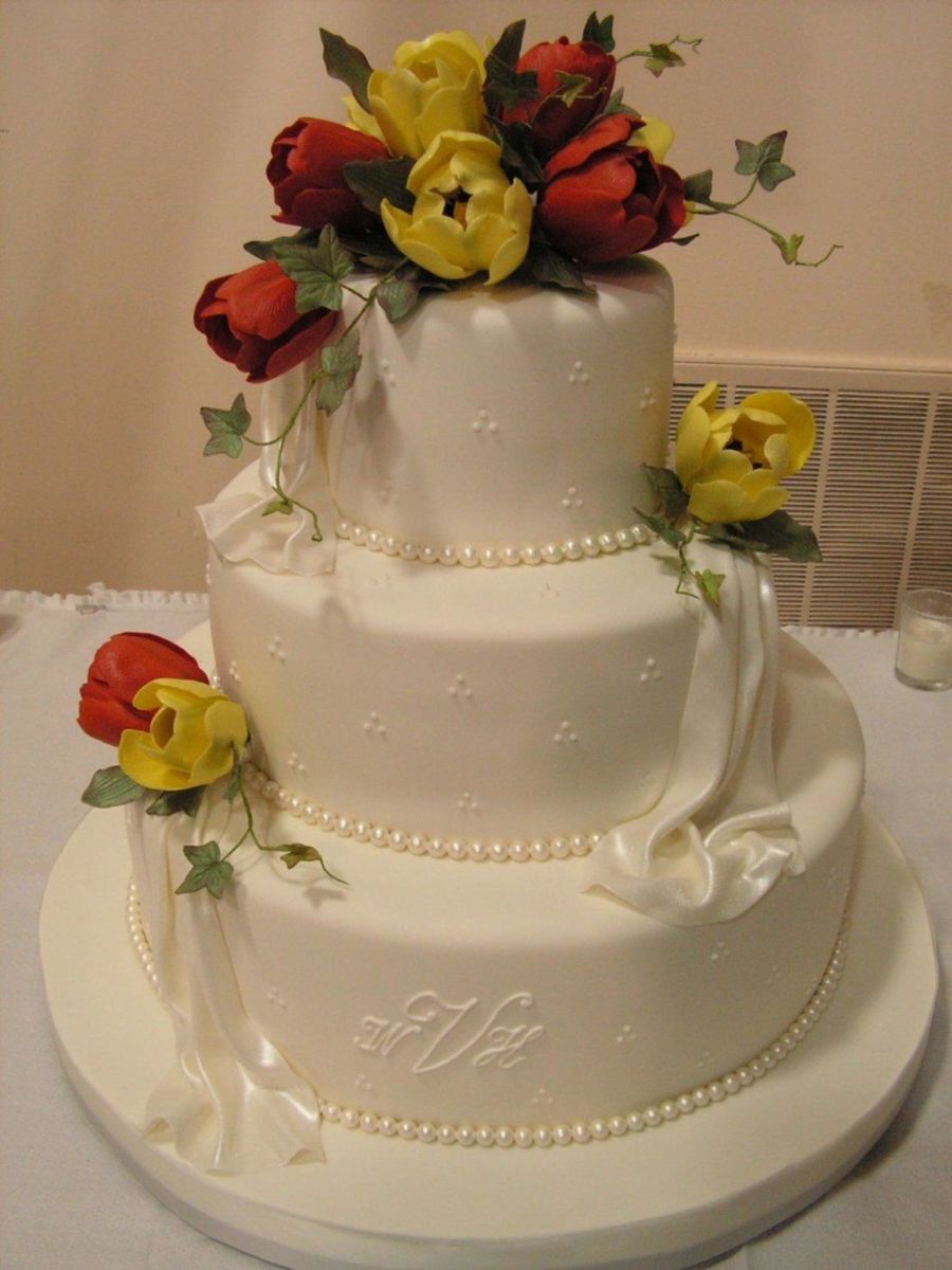 When asked to mix red and yellow gumpaste tulips, I just cringed... but we do what they want! I wound up LOVING this cake :-) Thanks for peeking!