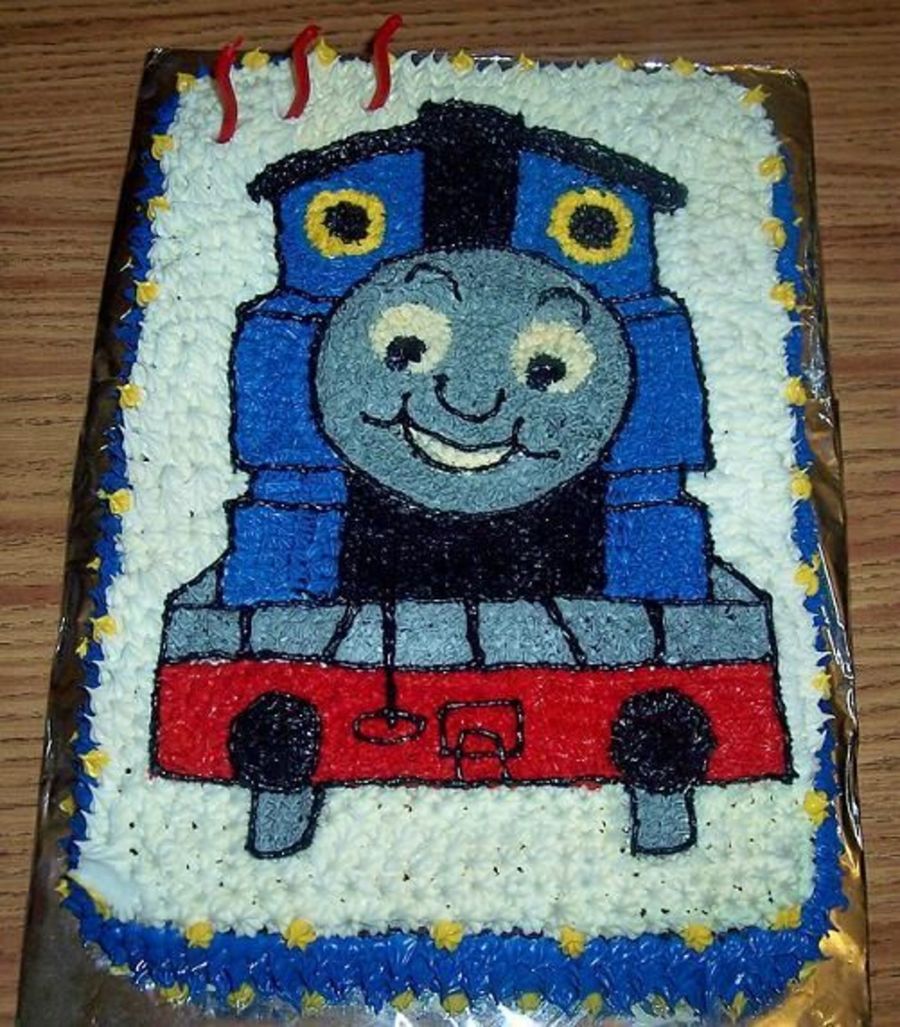 Here is my first attempt at Thomas for my son's 3 year old birthday. It was a little harder to decorate at times because he would come out and want to help with the icing. You can even see the spot on the bottom where he swiped some icing. He kept bumping the table and the cake....But he loved it. I have another Thomas cake to do for the party...any suggestions for improvement are welcome.