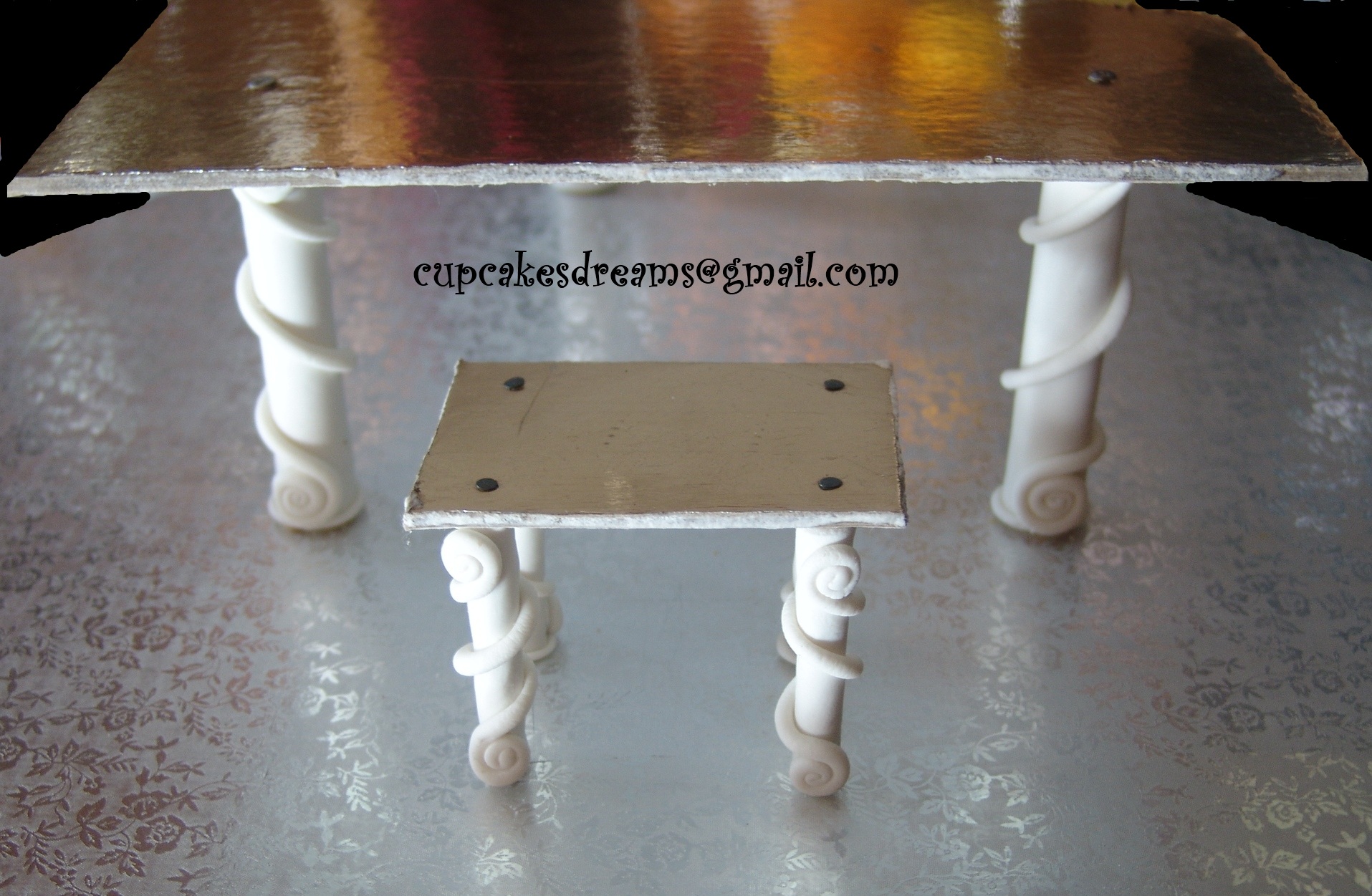 5 – For the fun part... I started by the piano bench. I did it with cake to…and covered it with fondant.