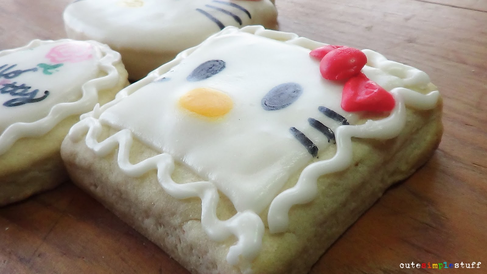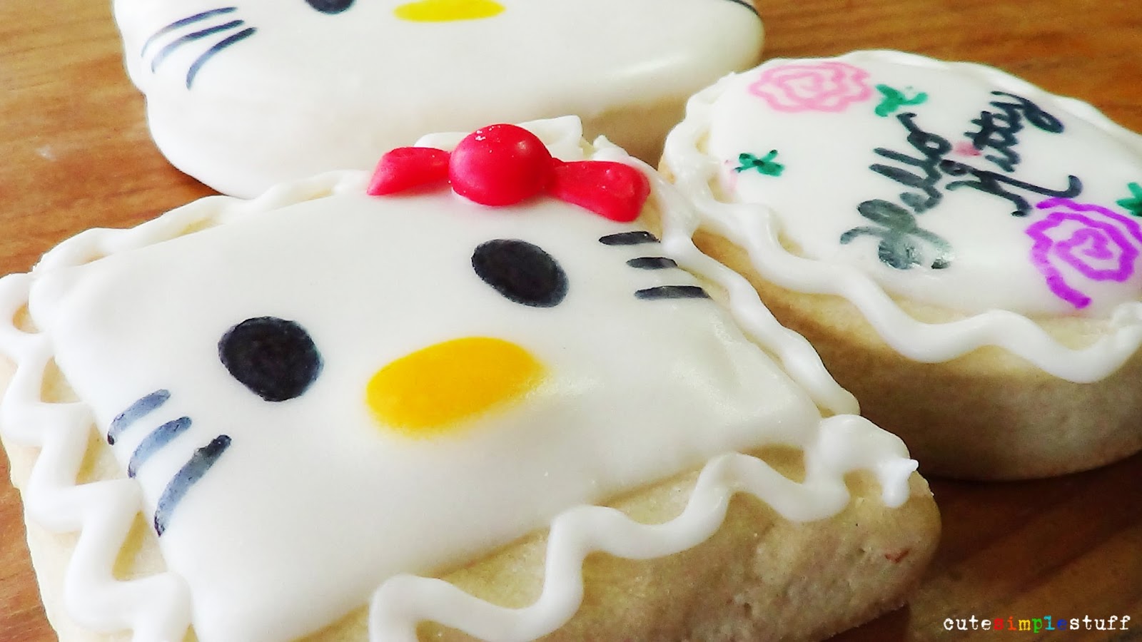 Anyways, back to the cookies. A couple of months ago I visited a local baking supply store and I saw a Hello Kitty cookie cutter, followed by that I had a massive flashback of the things mentioned on top. I bought it so I could make cookies like this ones.