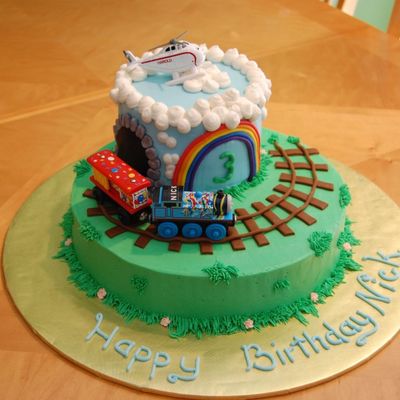 Cake I made for my BIL. BC icing on vanilla cake. Living room scene and clock numbers all done with gumpaste. His nickname is "Recliner Man" so - he REALLY enjoyed the cake along with his favorite pet "Shamrock" by his side. Thanks to Aine2 for her tutorials on the tea and toast and dog. I really love gumpaste now