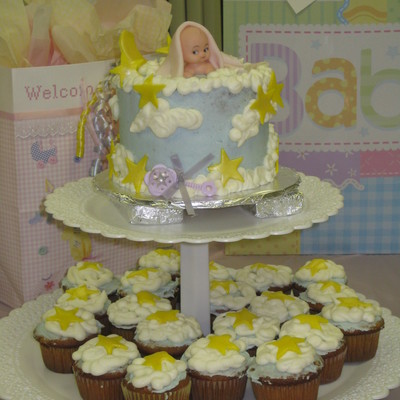 Made this for a co-woker baby shower, use buttercream, stars are made with fondant.