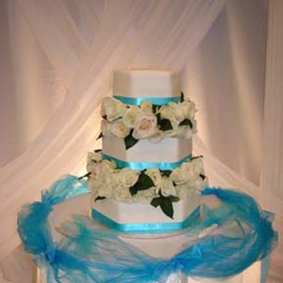 This is a cake I did for trade for photos. The bride wanted figures that looked like them. It went from originally "Something small, I don't care, just maybe 2 tiers" to this.