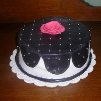 • Black And White Mother's Day Cake Marbled cake with buttercream and covered in fondant and decorated with silver dragees and gumpaste rose.