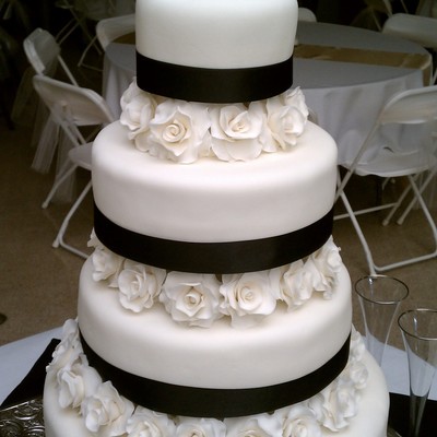 WASC and Strawberry cake w/ bc frosting, covered in MMF, with MMF roses and black ribbon. Thanks for looking!