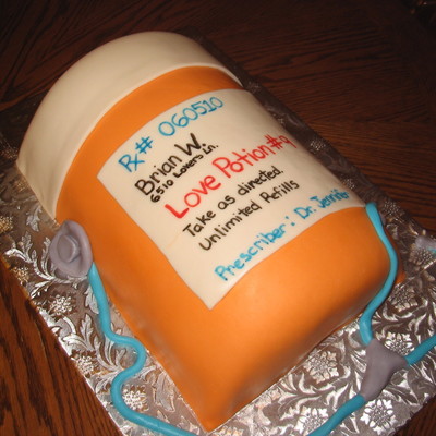 This was for a friend's wedding. The groom is in pharmacy school and the bride is in medical school so he wanted to include both fields in the cake. Used 8 inch rounds cut in half, covered in mmf. Thank you to all the CCer's for all the inspiration!!!