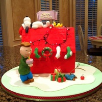 • Snoopy cake for a birthday.i hand molded charlie, snoopy, snoppy's bird, the stockings, the wreath,the birthday sign,the presents, the tree,...