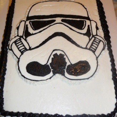 Used design idea of others in the gallery. 6" and 8" black fondant with bc flames (red, yellow, and orange in same bag with leaf tip). Found Darth Vader candle on eBay. Using the idea of someone else in the galleries, I added the sound chip from a music card to the bottom of the cakeboard, so it plays the SW theme when you pull the tab.