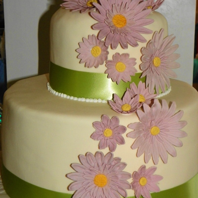 Made this for my birthday today. It was an experimental cake where many of the accents and the stacking were firsts for me :) It was fun! But I learned lots to change for next time. 1st tier is vanilla cake with chocolate ganche, vanilla buttercream and strawberry fondant. 2nd tier is lemon cake with lemon curd and vanilla buttercream and lemon fondant. White chocolate cameo and gumpaste and fondant accents. thanks for looking!